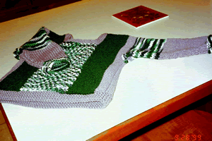 Here are two pictures of a CIC orphan sweater I knit this past year.